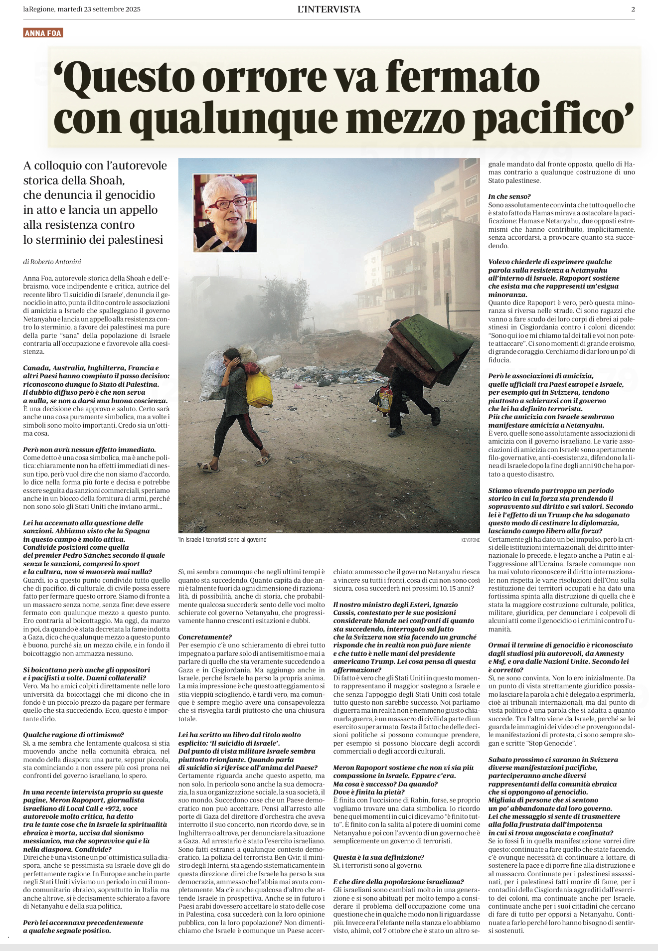 - Un'intervista molto importante di Roberto Antonini ad Anna Foa, pubblicata su laRegione di mertedì 23.09.2025.